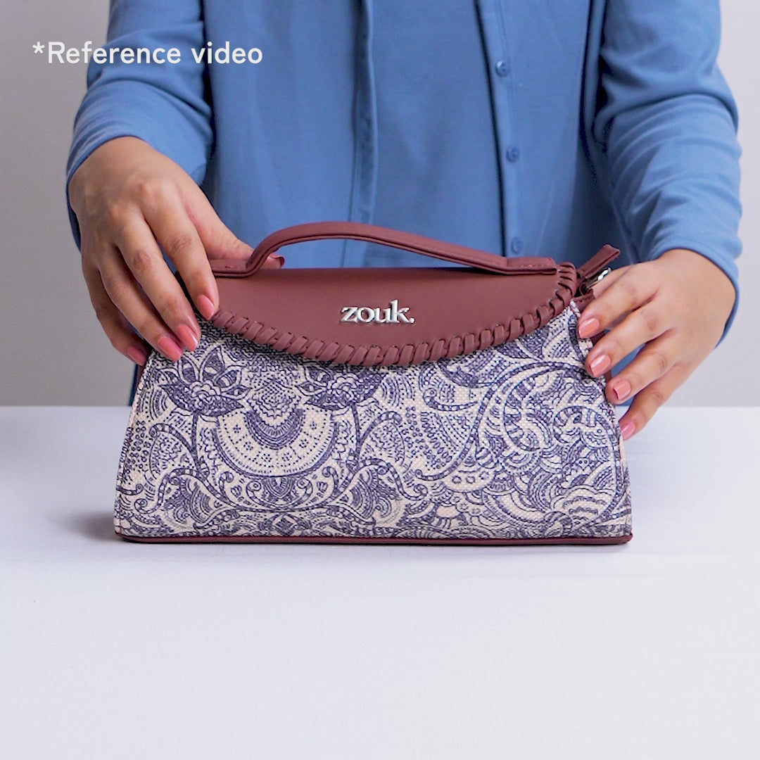Materials: Vegan leather, handicraft fabric, nickel fittings