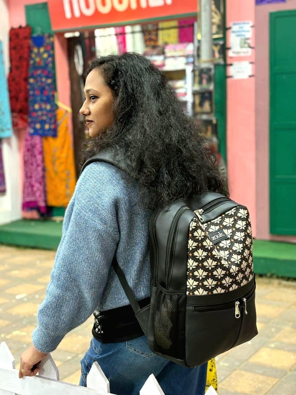 Material Used - Vegan Leather, Handicraft Fabric, Water-resistant inner lining, Premium accessories