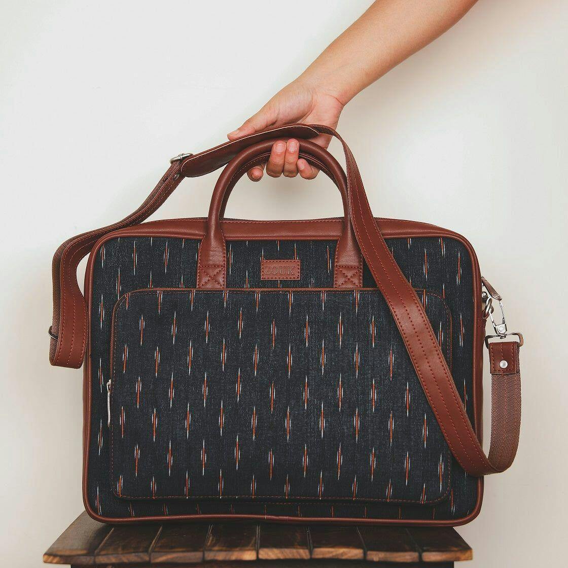 Material Used - Vegan Leather, Handicraft Fabric, Water-resistant inner lining, premium accessories